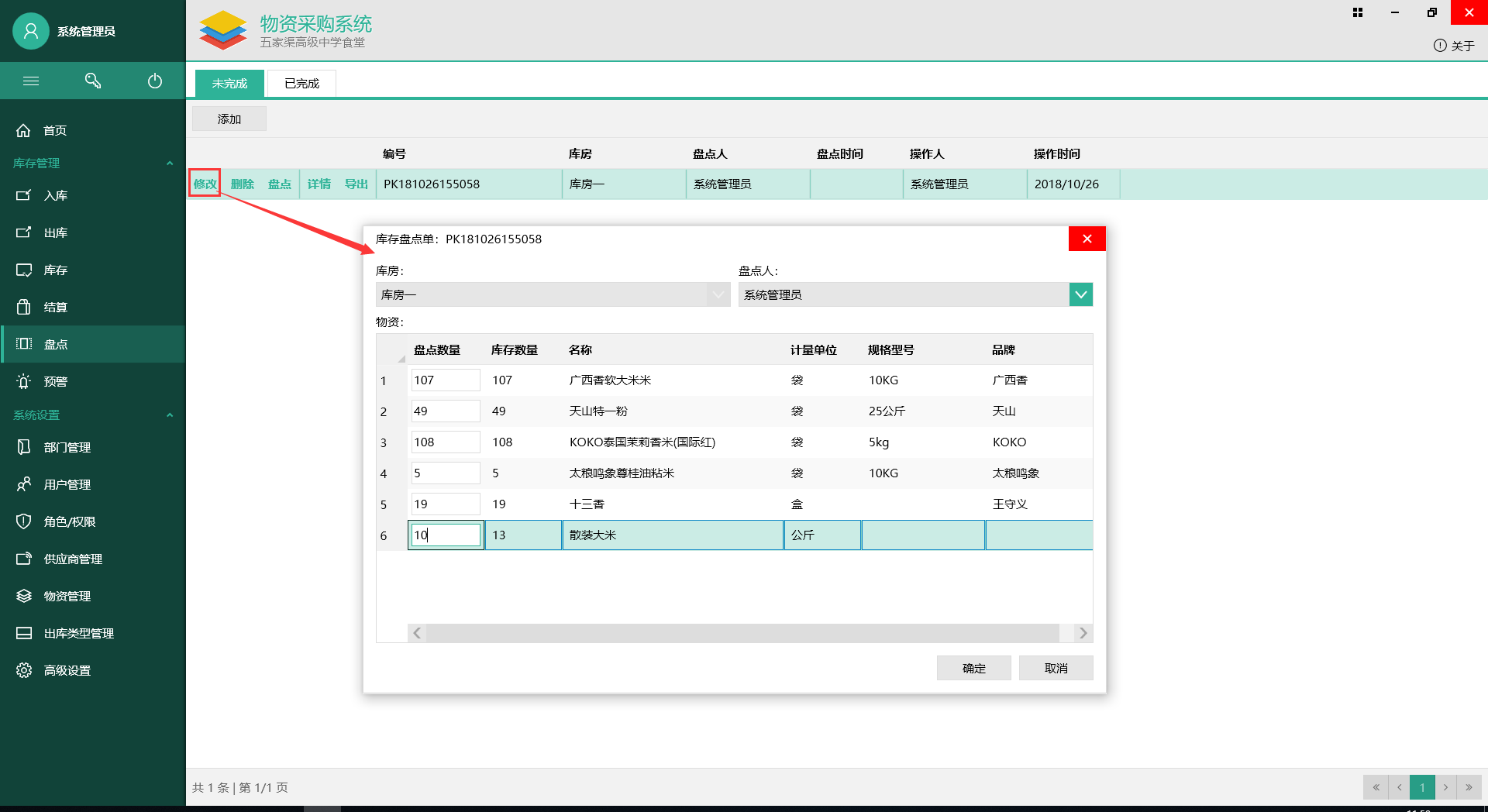 用(yòng)于維護物(wù)資、物(wù)資入庫、物(wù)資出庫、物(wù)資庫存管理(lǐ)、庫存盤點、庫存預警的(de)&信息系統。