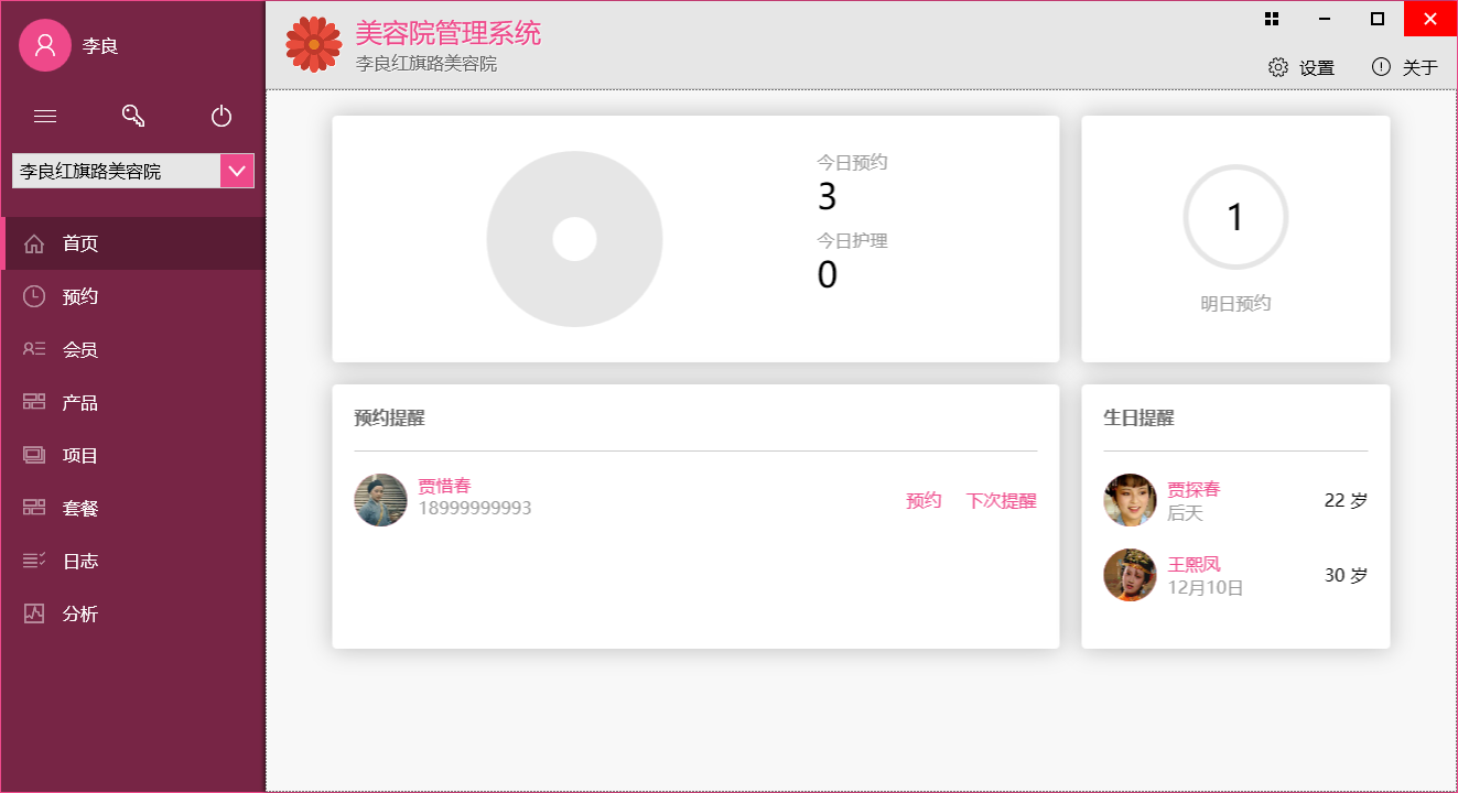 集會(huì)員(yuán)、産品、項目、套餐、預約、提醒、分(fēn)析等美(měi)容院綜合一(yī)體(tǐ)化(huà)管理(lǐ)系統。♦