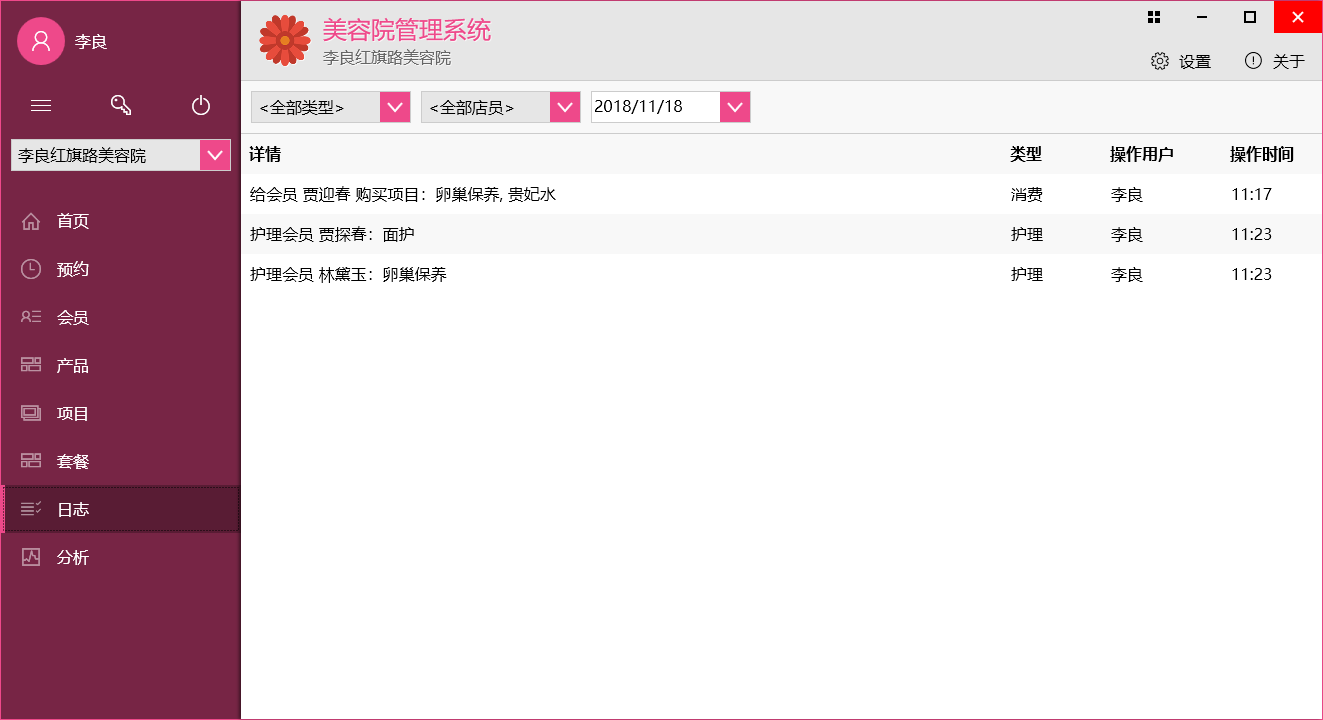店(diàn)面日(rì)志(zhì),主要(yào)記錄今日(rì)護理(lǐ)的(de)日(rì)志(zhì),消費(fèi)的(de)日(rì)志(zhì)等