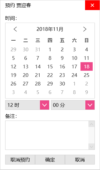 預約,分(fēn)時(shí)間(jiān)段、在此可(kě)以修改預約、來(lái)客護理(lǐ)等操作(zuò)