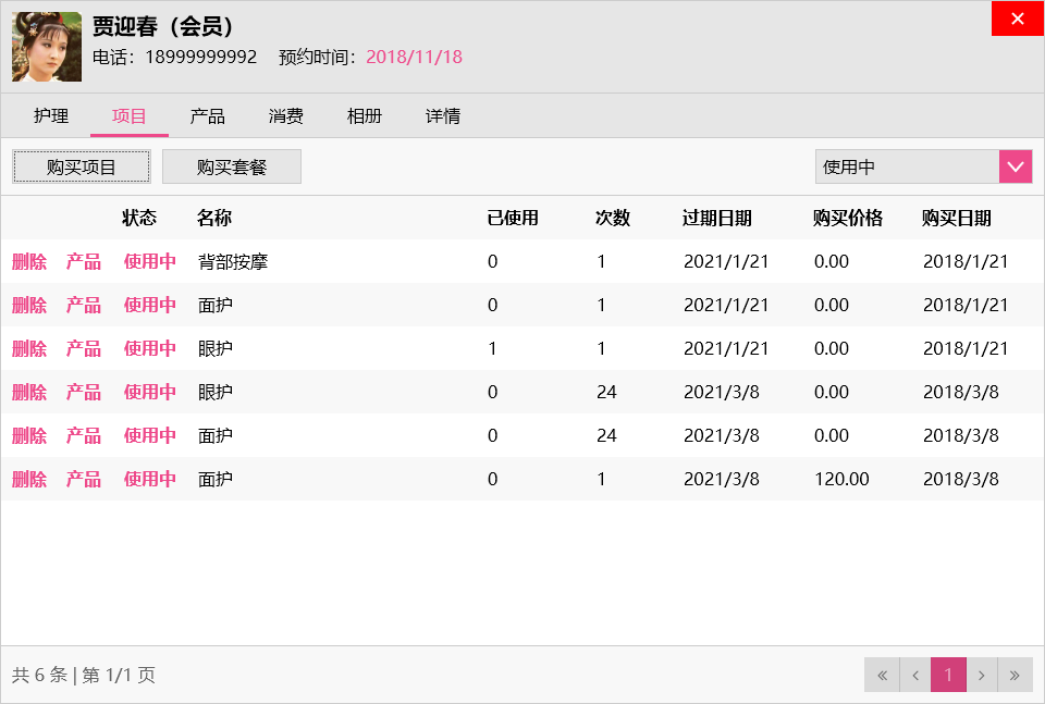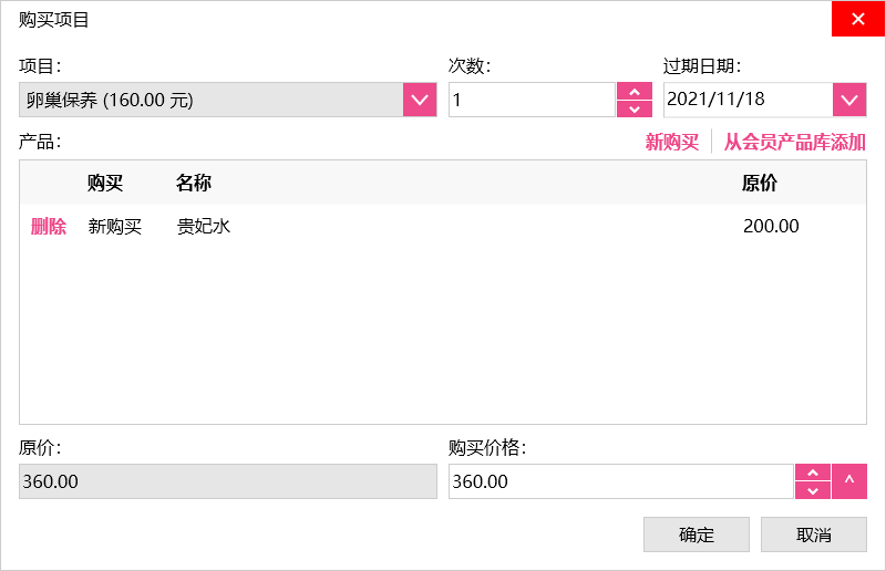 購(gòu)買項目的(de)時(shí)候,可(kě)以選擇會(huì)員(yuán)已有(yǒu)産品,方便記錄使用(yòng)次數(sh♥ù)