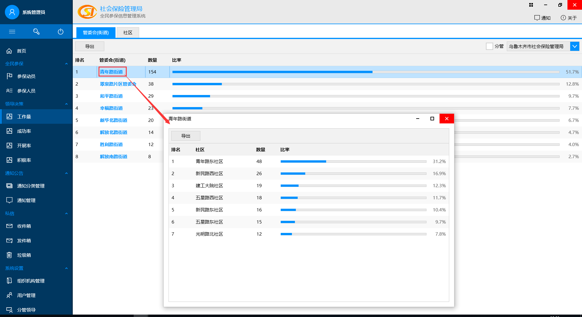 查看(kàn)權限內(nèi)的(de)動員(yuán)情況,比例,可(kě)以根據工(gōng)作(zuò)量、成功率、開(kāi)展率、積極率四個(gè)方面查看(kàn),多(duō)λ種激勵策略