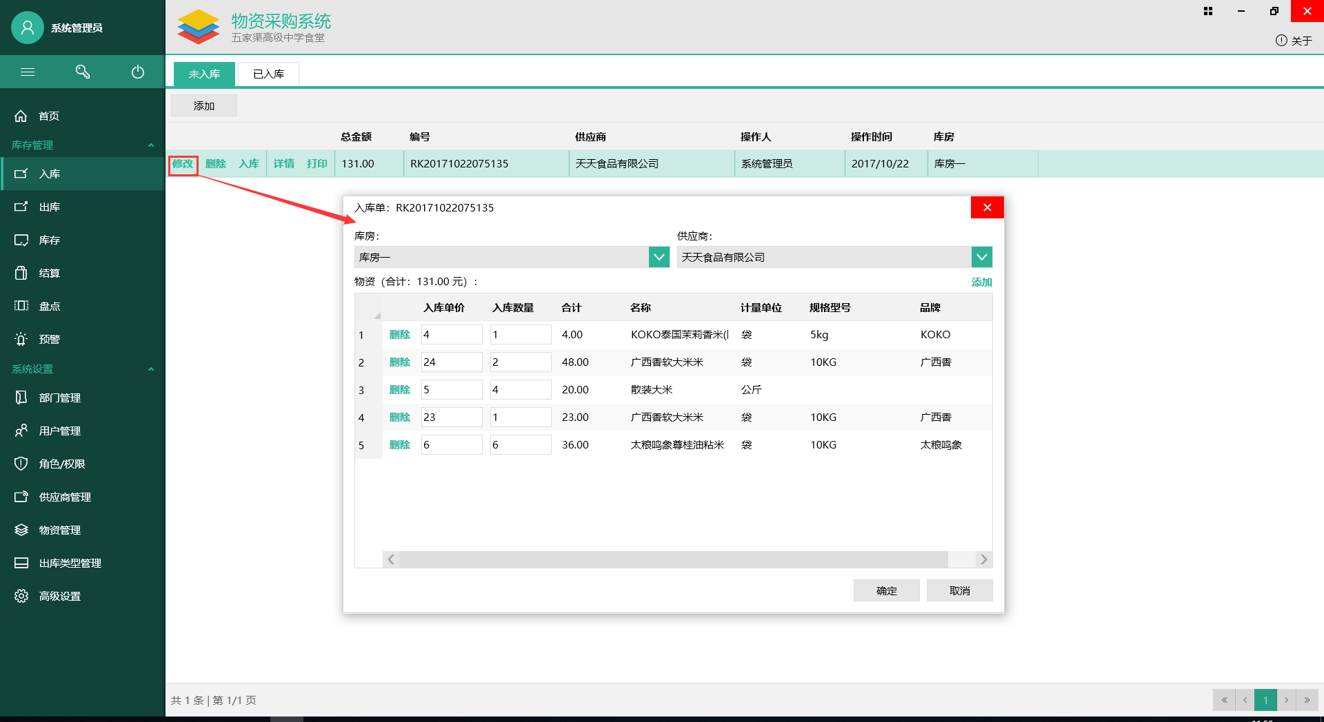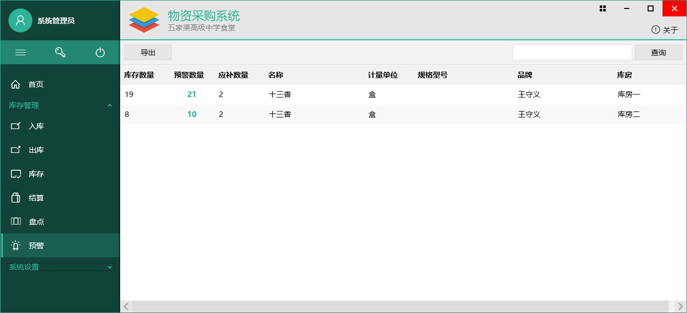 用(yòng)于維護物(wù)資、物(wù)資入庫、物(wù)資出庫、物(wù)資庫存管理(lǐ)、庫存盤點、庫存預警的(de)&信息系統。