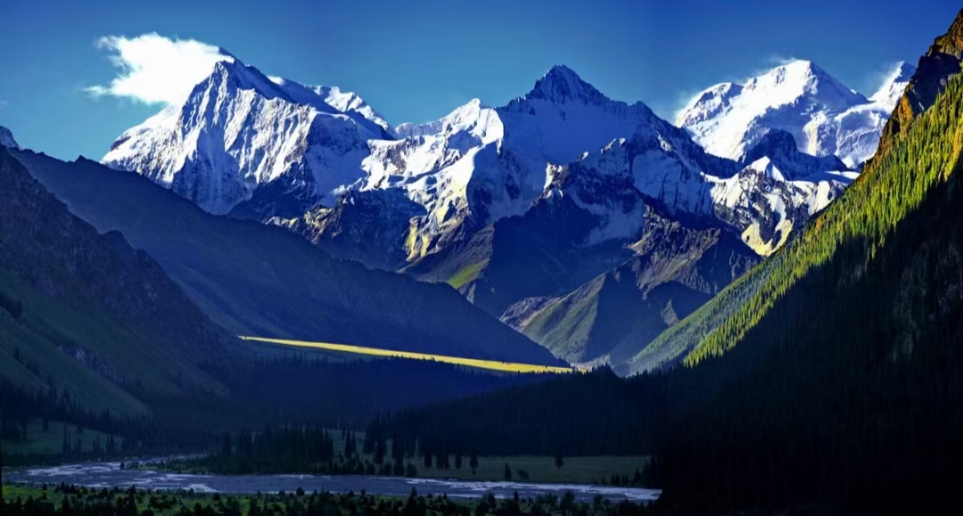 皚皚白(bái)雪(xuě)眷戀著(zhe)巍巍崇山(shān)