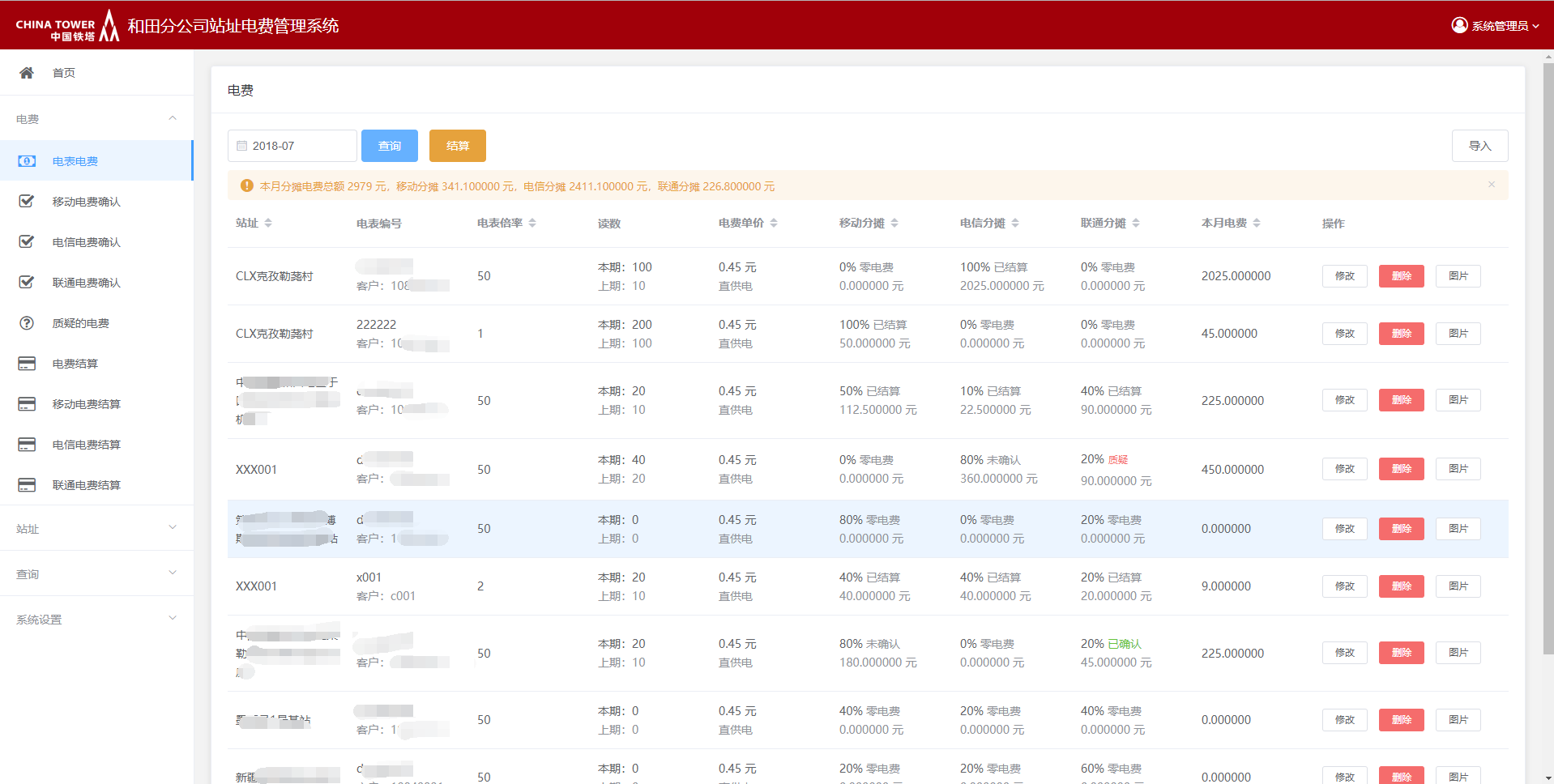 用(yòng)于管理(lǐ)站(zhàn)址電(diàn)費(fèi),包括站(zhàn)址維護,電(diàn)表維護、電(diàn)費(fèi)确認及結算(suàn)、包杆等功能 (néng),B/S結構,包括移動端及網頁端。