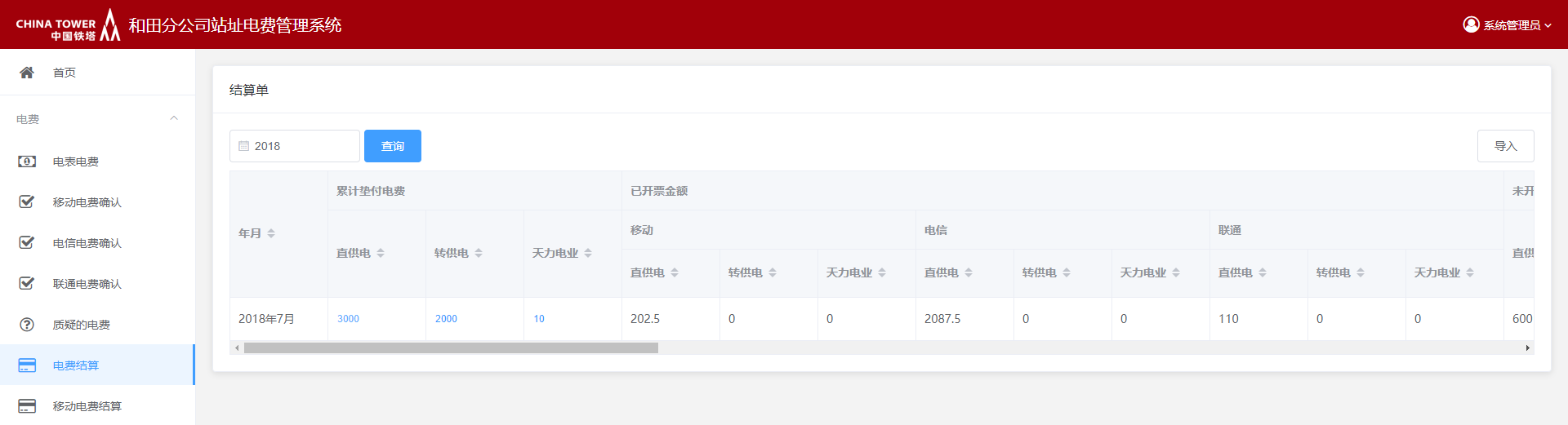 電(diàn)費(fèi)結算(suàn):電(diàn)費(fèi)結算(suàn),維護累計(jì)墊付的(de)電(diàn)&費(fèi)、收取運營商繳納的(de)電(diàn)費(fèi),并且計(jì)算(suàn)電(diàn)費(fèi)回報(bào)率等功能(néng)。